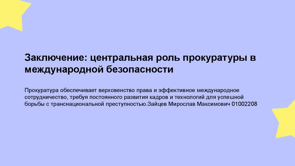 Заключение: центральная роль прокуратуры вмеждународной безопасности