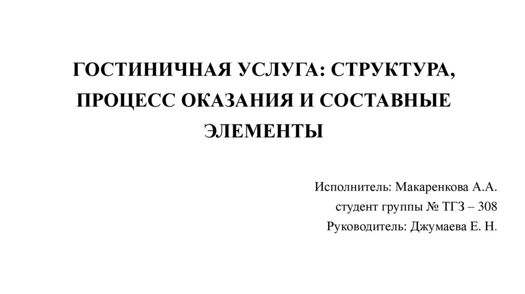 ГОСТИНИЧНАЯ УСЛУГА: СТРУКТУРА,ПРОЦЕСС ОКАЗАНИЯ И СОСТАВНЫЕ