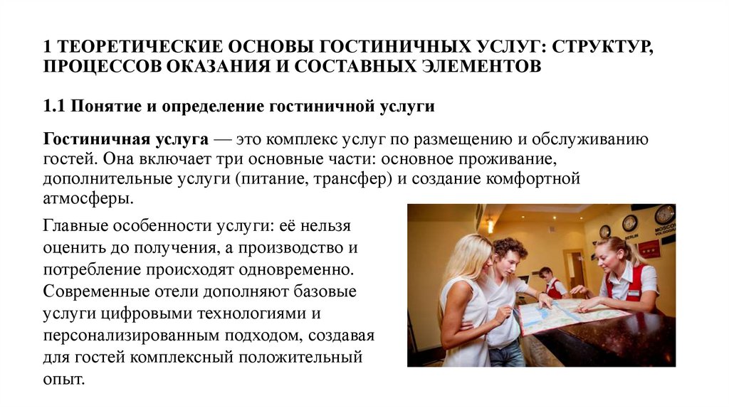 1 ТЕОРЕТИЧЕСКИЕ ОСНОВЫ ГОСТИНИЧНЫХ УСЛУГ: СТРУКТУР,ПРОЦЕССОВ ОКАЗАНИЯ И СОСТАВНЫХ ЭЛЕМЕНТОВ