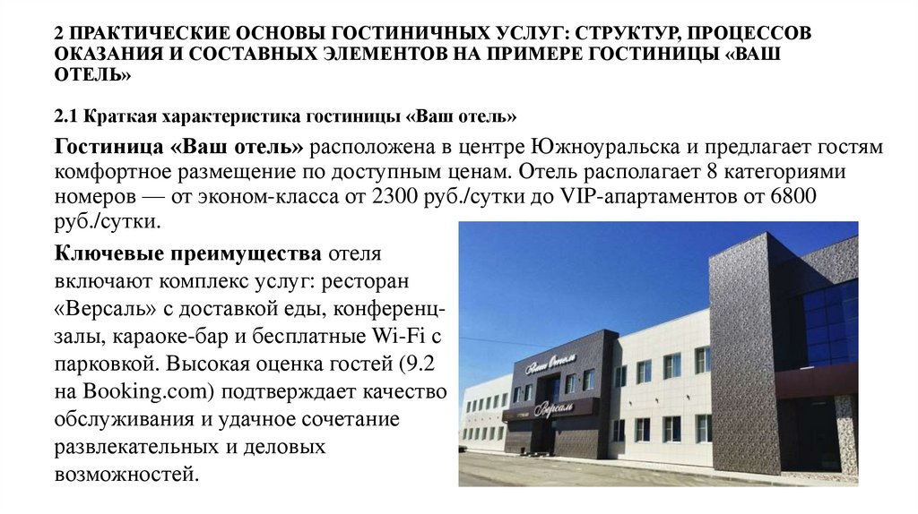 2 ПРАКТИЧЕСКИЕ ОСНОВЫ ГОСТИНИЧНЫХ УСЛУГ: СТРУКТУР, ПРОЦЕССОВОКАЗАНИЯ И СОСТАВНЫХ ЭЛЕМЕНТОВ НА ПРИМЕРЕ ГОСТИНИЦЫ «ВАШ