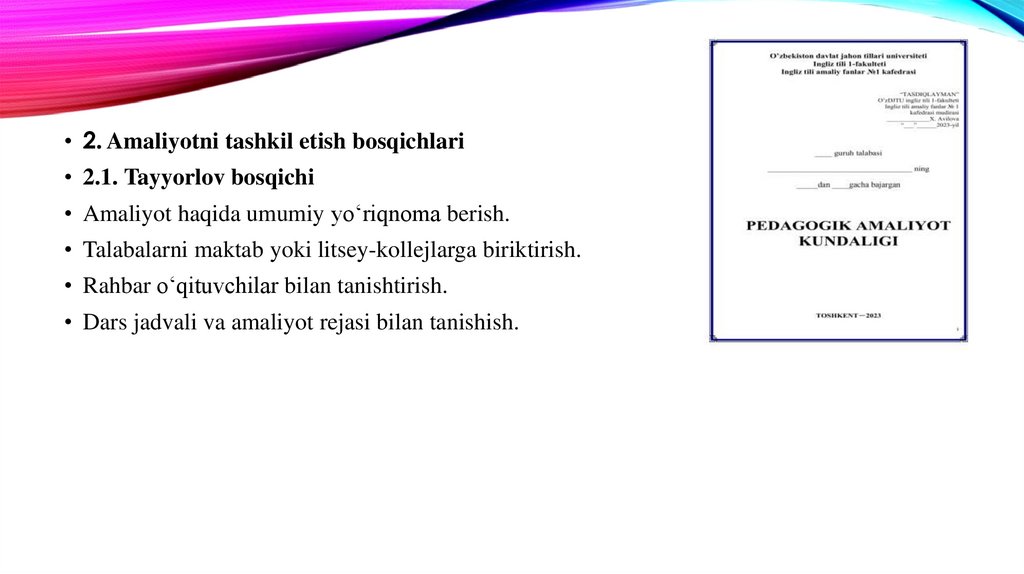 2. Pedagogik amaliyot hujjatlarini rasmiylashtirish
