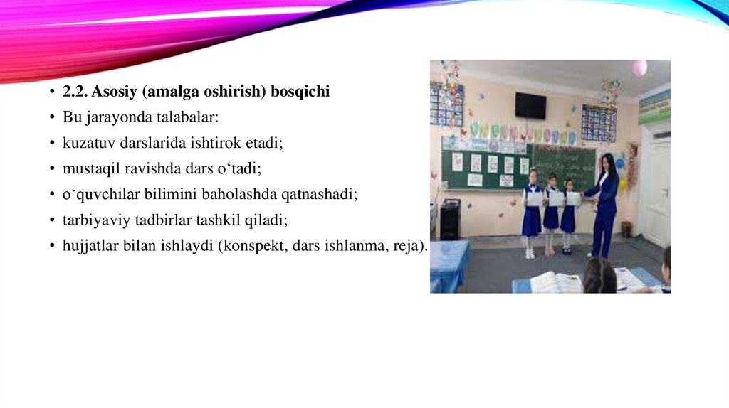 • 2.2. Asosiy (amalga oshirish) bosqichi• Bu jarayonda talabalar: