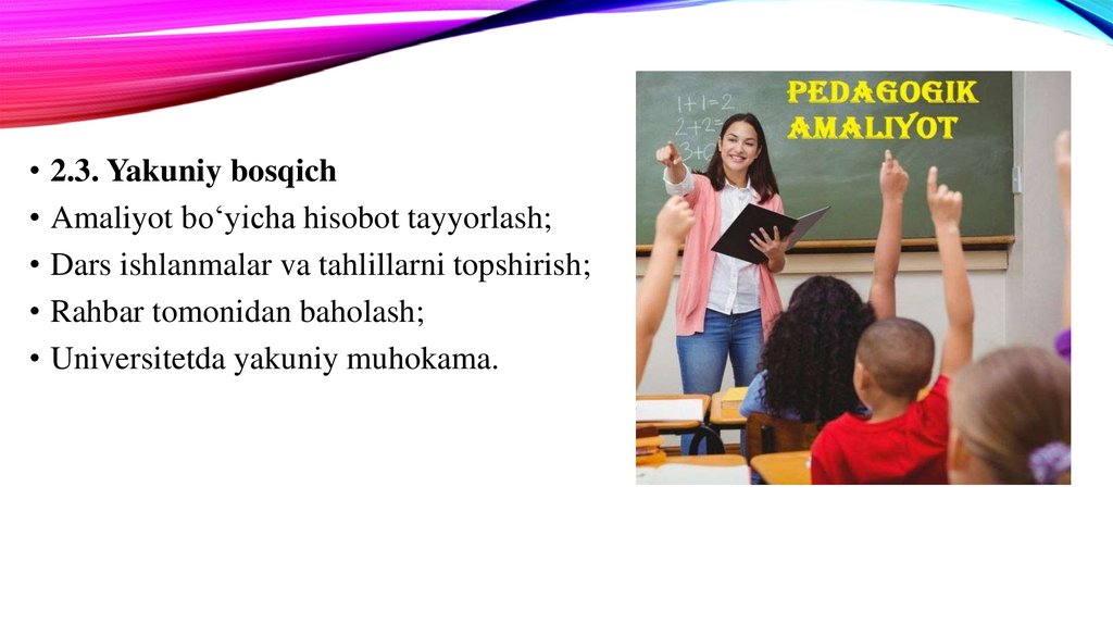 MAVZU REJASI:1. Pedagogik amaliyotni tashkil qilish