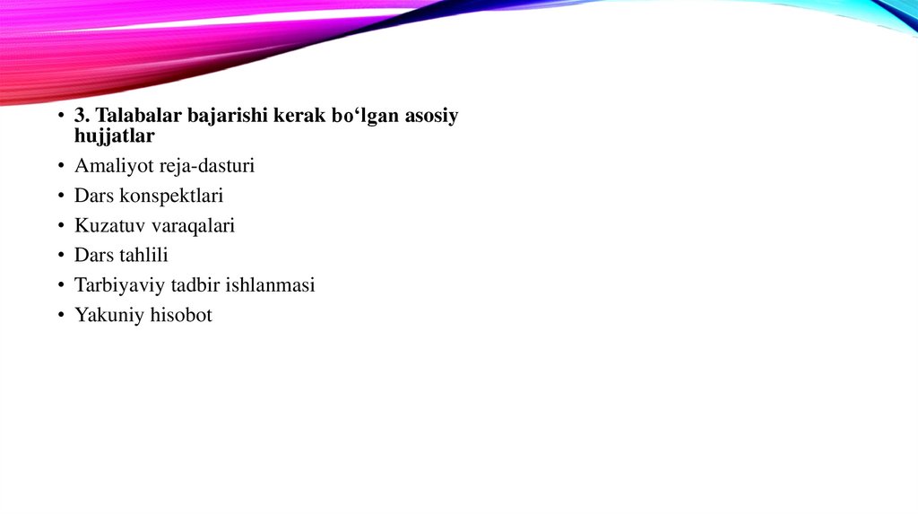 • 3. Talabalar bajarishi kerak bo‘lgan asosiyhujjatlar
