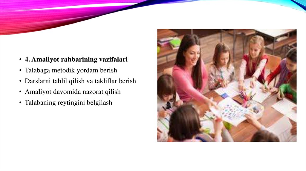 • 4. Amaliyot rahbarining vazifalari• Talabaga metodik yordam berish