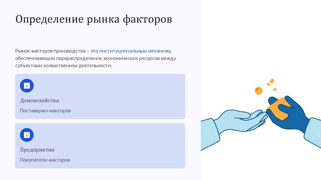 Определение рынка факторовРынок факторов производства — это институциональный механизм,