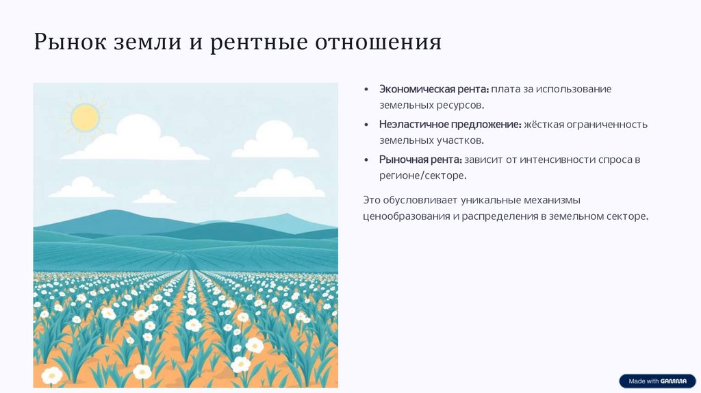 ценообразования и распределения в земельном секторе.
