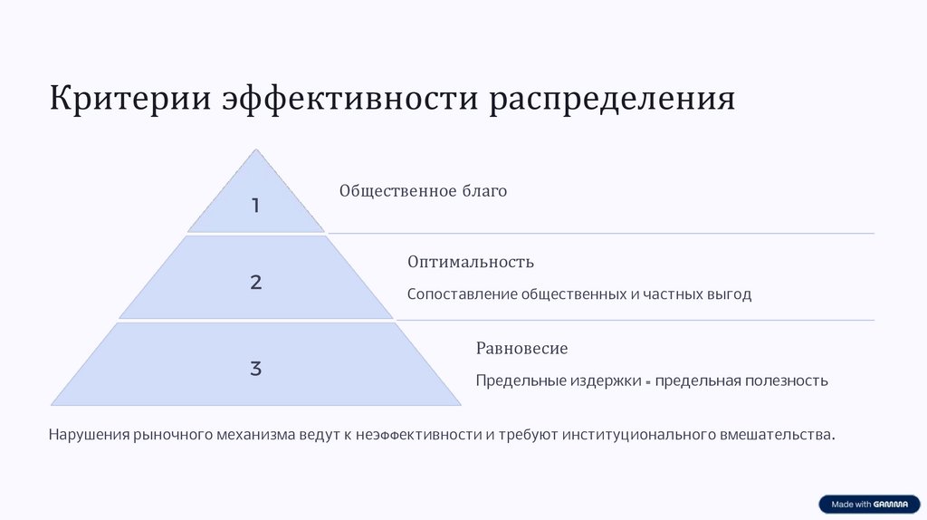 Нарушения рыночного механизма ведут к неэффективности и требуют институционального вмешательства.
