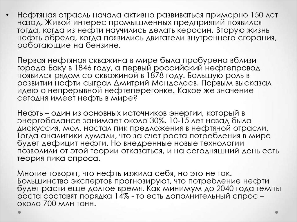 Нефтяная отрасль начала активно развиваться примерно 150 лет