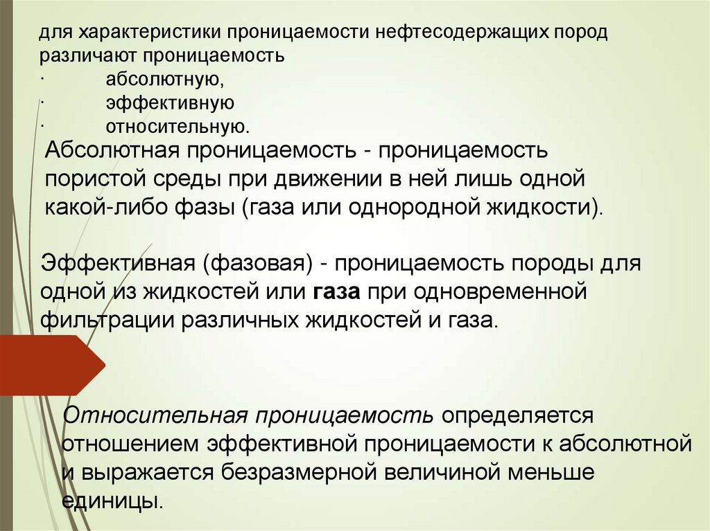 для характеристики проницаемости нефтесодержащих породразличают проницаемость