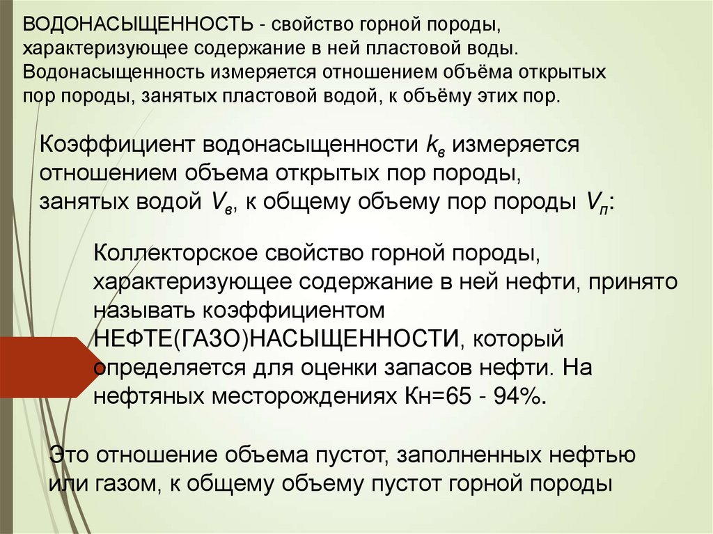 ВОДОНАСЫЩЕННОСТЬ - свойство горной породы,характеризующее содержание в ней пластовой воды.
