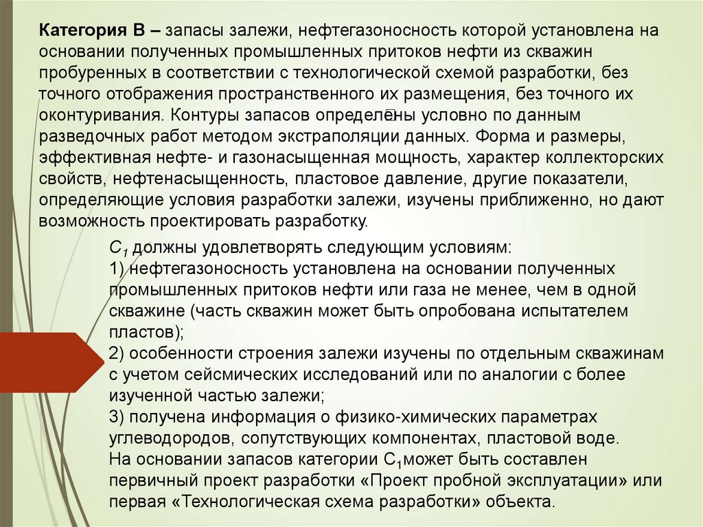 Категория В – запасы залежи, нефтегазоносность которой установлена наосновании полученных промышленных притоков нефти из скважин