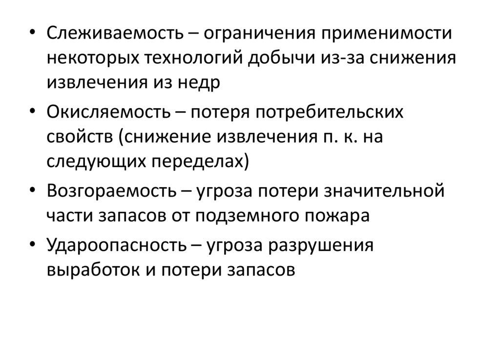 • Слеживаемость – ограничения применимостинекоторых технологий добычи из-за снижения
