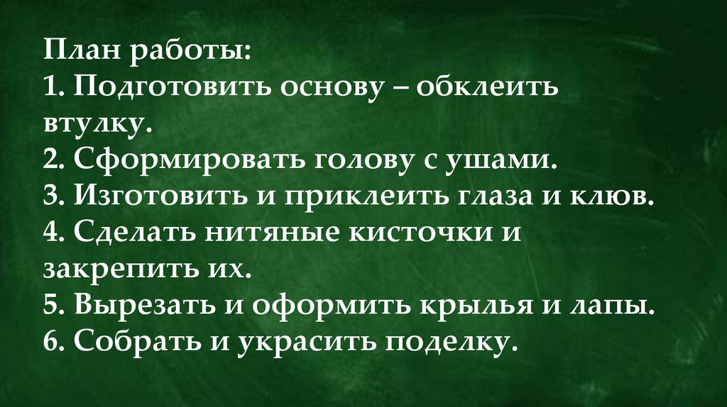 План работы:1. Подготовить основу – обклеить