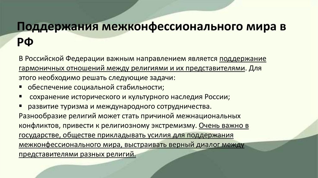 конфликтов, привести к религиозному экстремизму. Очень важно в