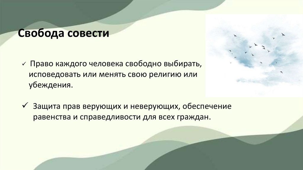 обеспечивающая право на выбор вероисповедания и защиту прав