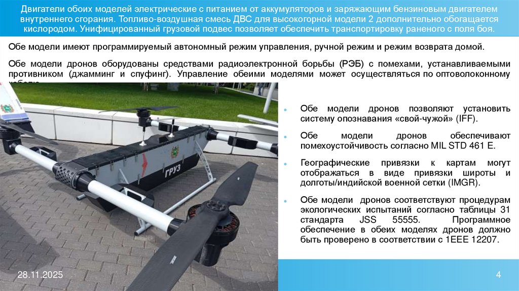 Обе модели дронов оборудованы средствами радиоэлектронной борьбы (РЭБ) с помехами, устанавливаемыми