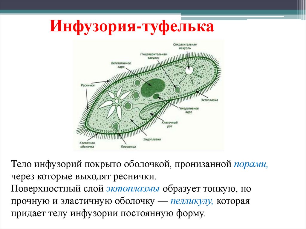 Инфузория-туфелькаТело инфузорий покрыто оболочкой, пронизанной порами,