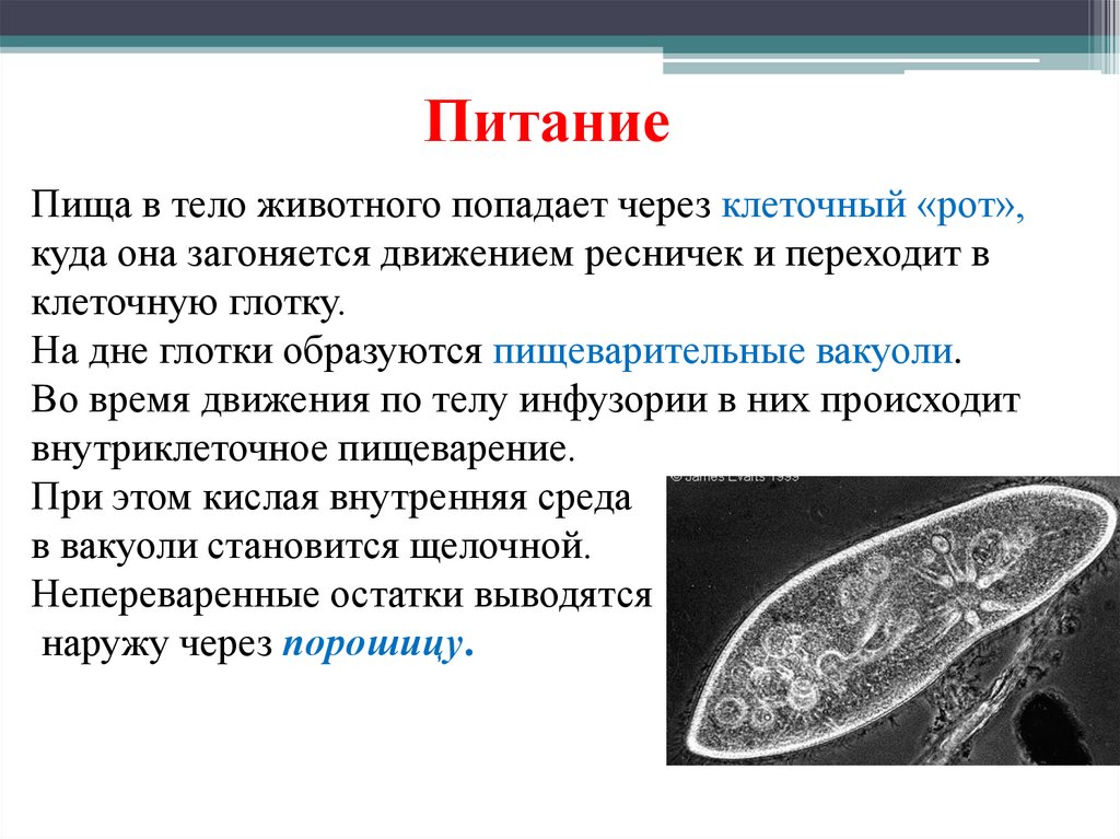 ПитаниеПища в тело животного попадает через клеточный «рот»,