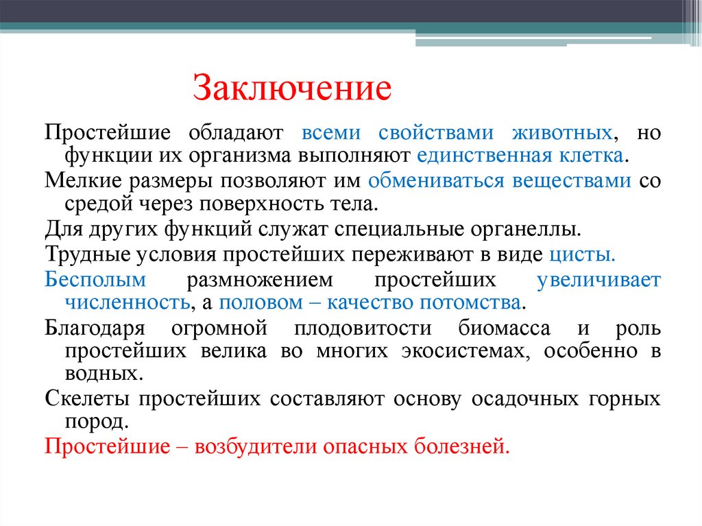 ЗаключениеПростейшие обладают всеми свойствами животных, но