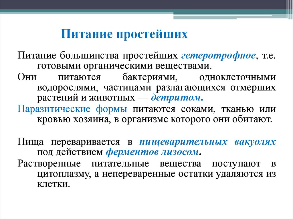 Питание простейшихПитание большинства простейших гетеротрофное, т.е.