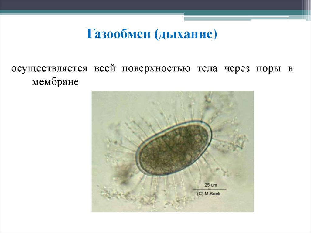 Газообмен (дыхание)осуществляется всей поверхностью тела через поры в