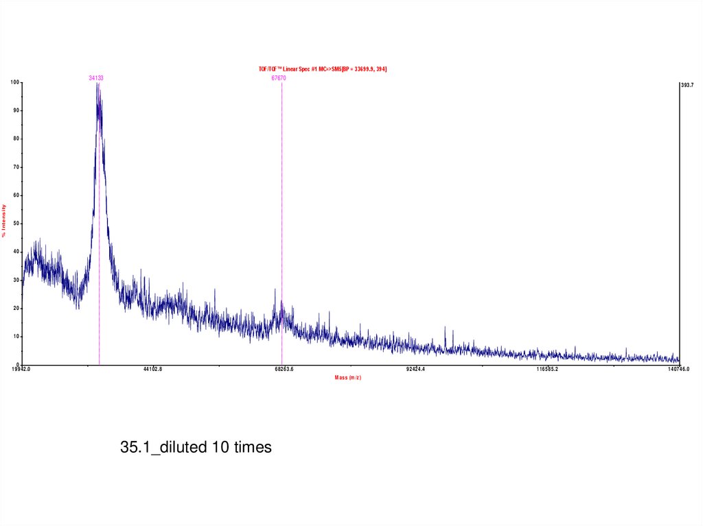100TOF/TOF™ Linear Spec #1 MC=>SM5[BP = 33699.9, 394]