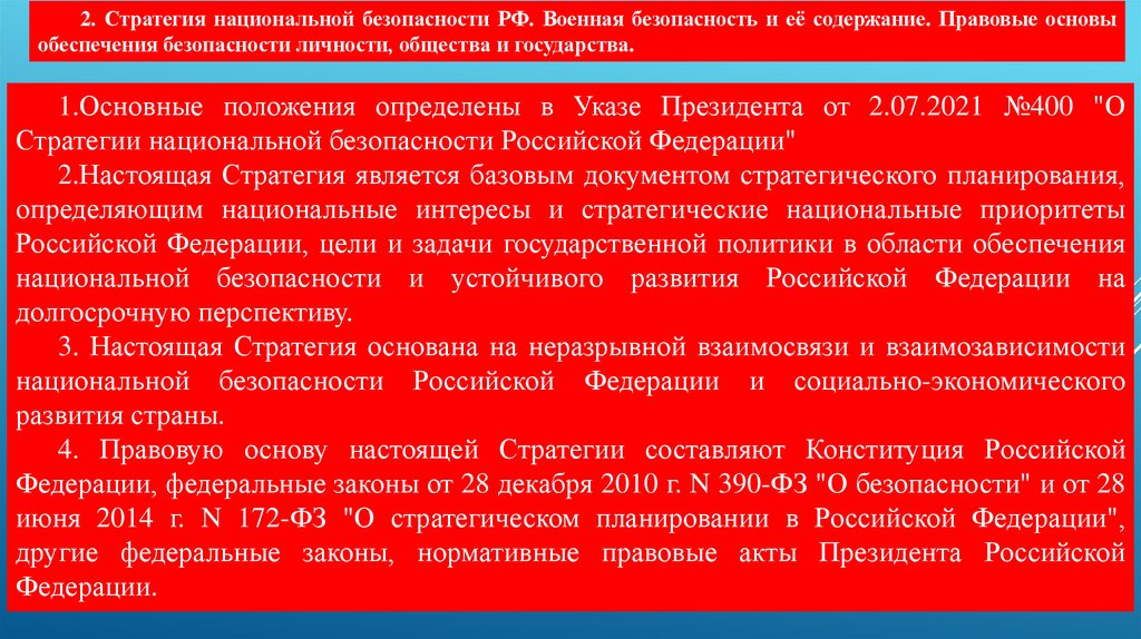 2. Стратегия национальной безопасности РФ. Военная безопасность и
