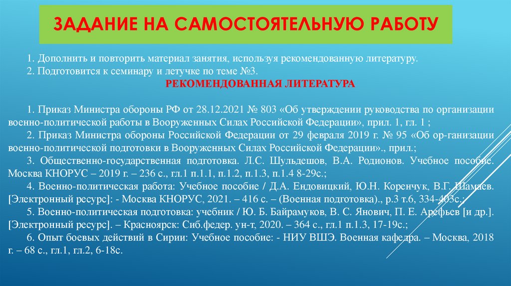 военно-политической работы в Вооруженных Силах Российской Федерации», прил.1, гл. 1 ;