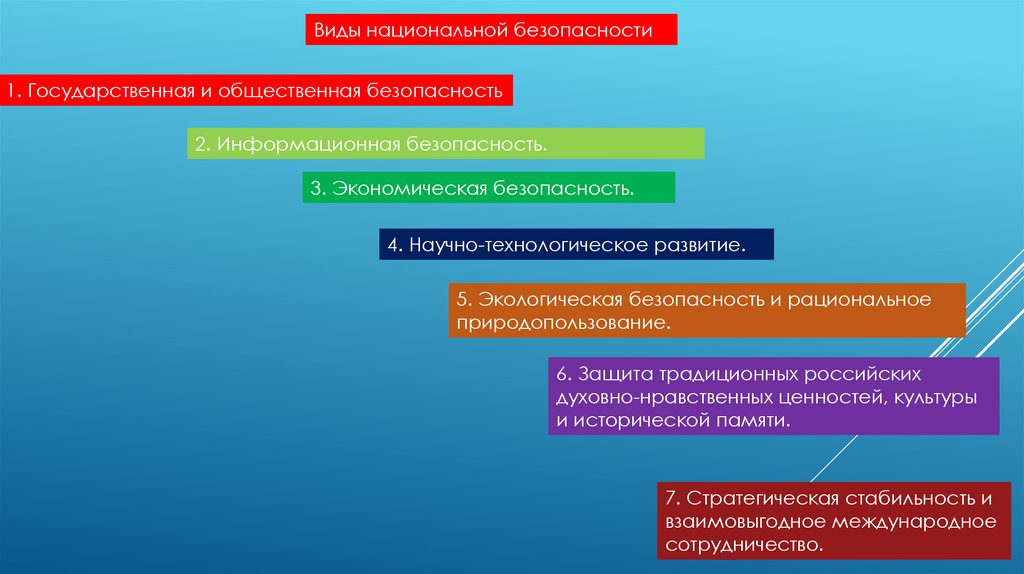 Виды национальной безопасности1. Государственная и общественная безопасность