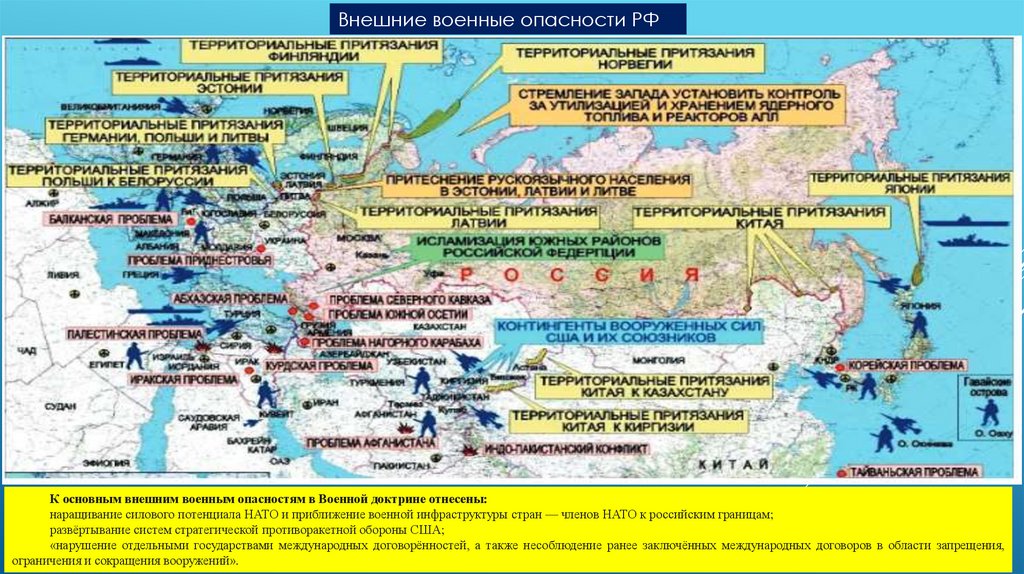 Внешние военные опасности РФК основным внешним военным опасностям в Военной доктрине отнесены: