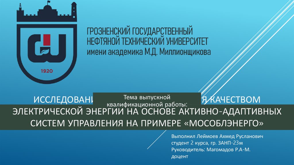 Тема выпускнойИССЛЕДОВАНИЕ РЕЖИМОВ