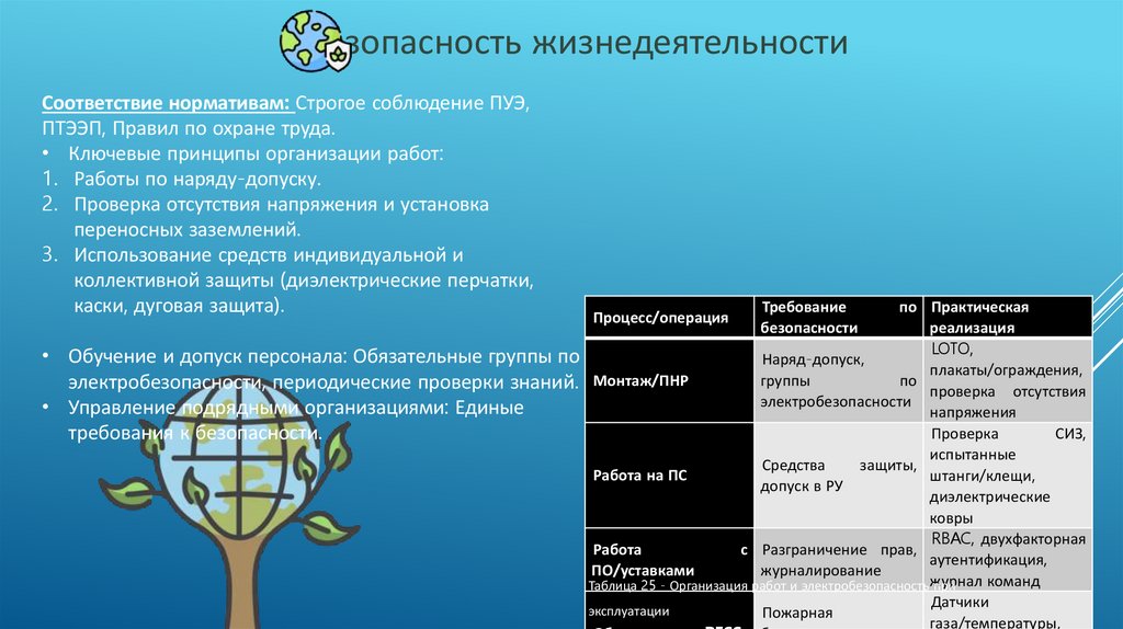 Безопасность жизнедеятельностиСоответствие нормативам: Строгое соблюдение ПУЭ,