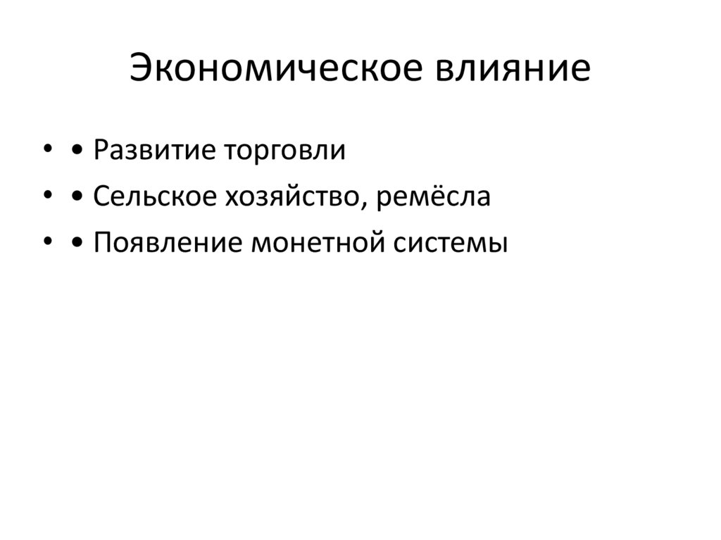 Экономическое влияние• • Развитие торговли