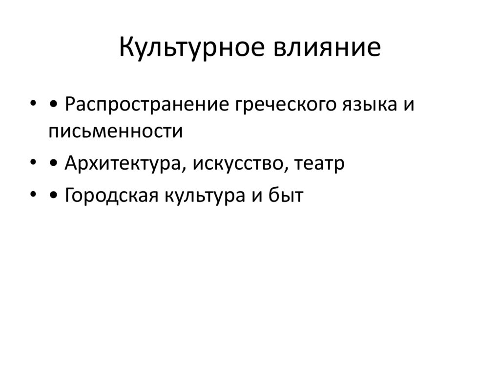 Культурное влияние• • Распространение греческого языка и