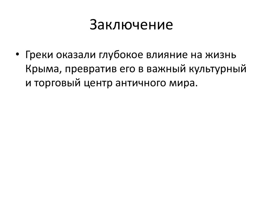 Заключение• Греки оказали глубокое влияние на жизнь