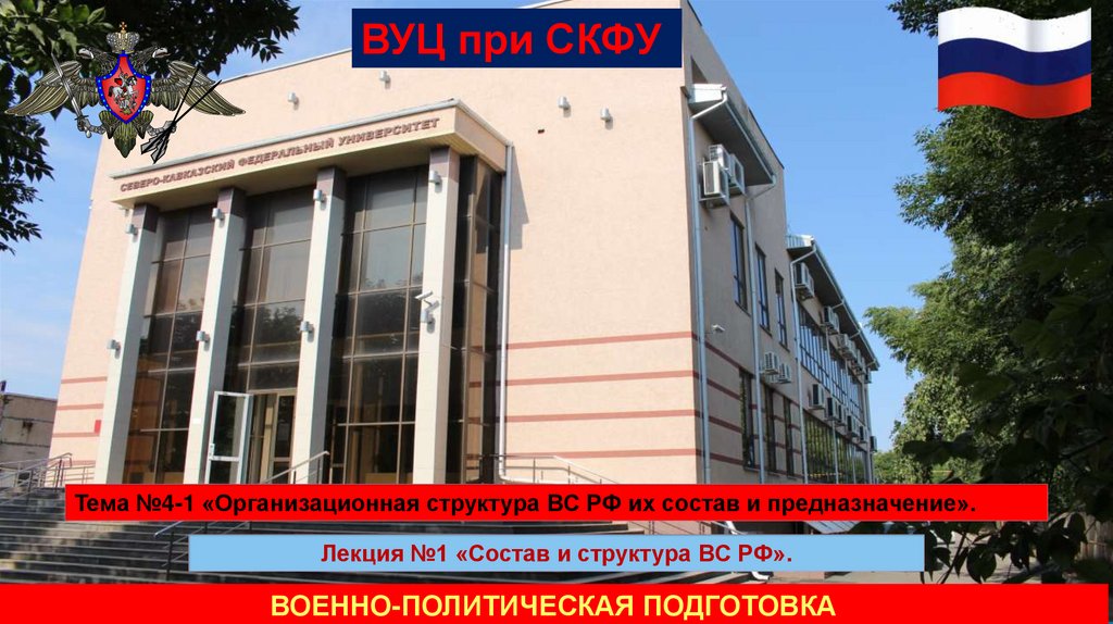 ВУЦ при СКФУТема №4-1 «Организационная структура ВС РФ их состав и предназначение».