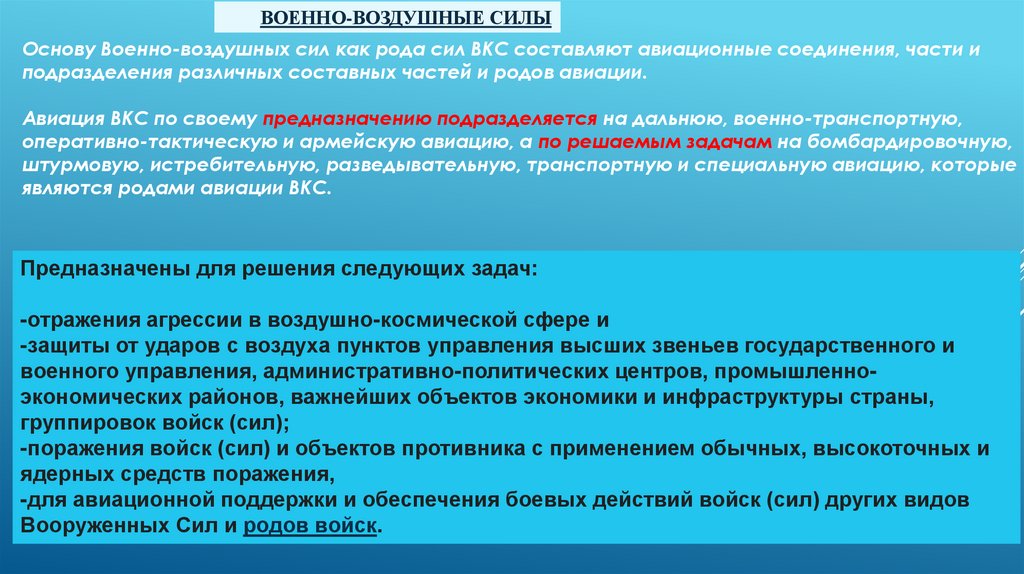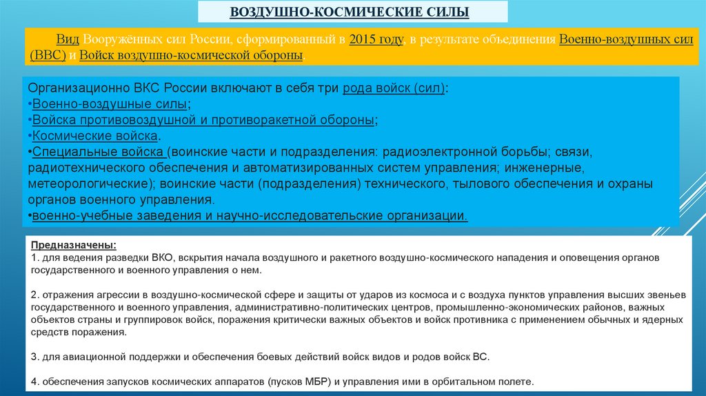 3. Концентрировать внимание на родах ВС РФ и родах видов ВС РФ.