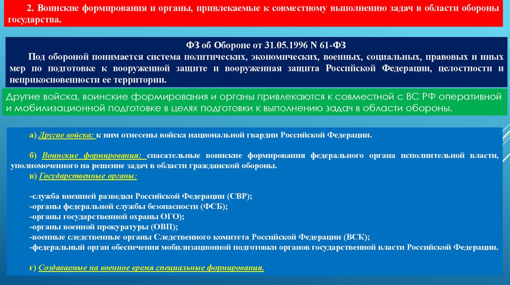 2. Воинские формирования и органы, привлекаемые к совместному