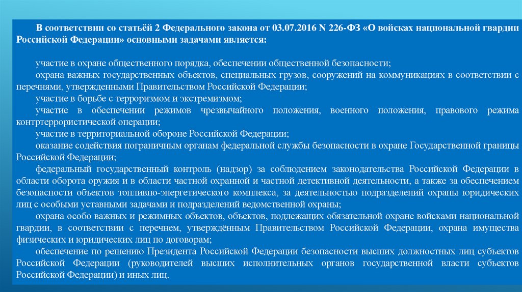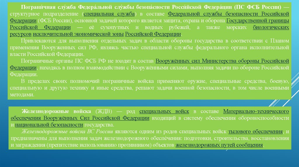 Федерации, находясь в полном взаимодействии с Вооружёнными силами, выполняя задачи по обороне Российской
