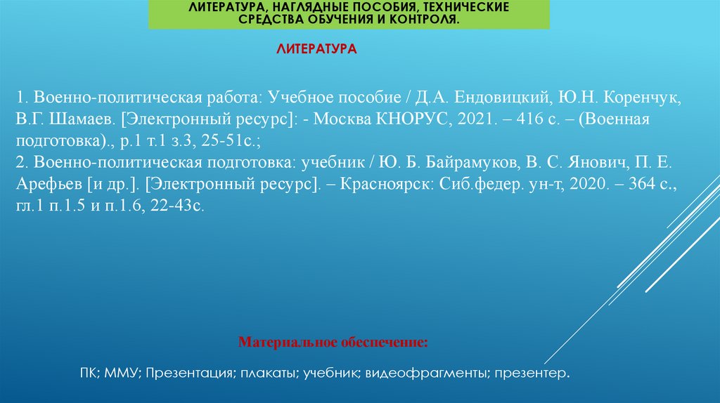 1. Военно-политическая работа: Учебное пособие / Д.А. Ендовицкий, Ю.Н. Коренчук,