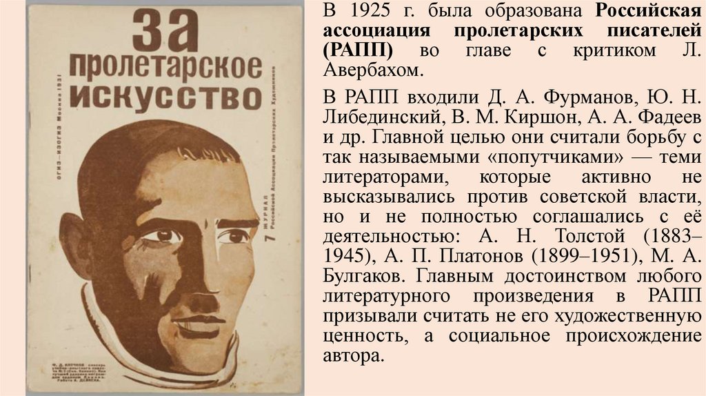 В 1925 г. была образована Российскаяассоциация пролетарских писателей
