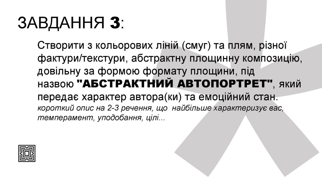 ЗАВДАННЯ 3:Створити з кольорових ліній (смуг) та плям, різної