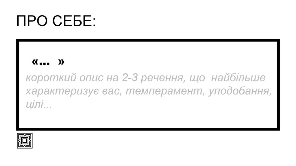 короткий опис на 2-3 речення, що найбільше характеризує вас,