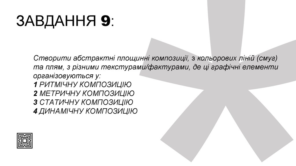 ЗАВДАННЯ 9:Створити абстрактні площинні композиції, з кольорових ліній (смуг)