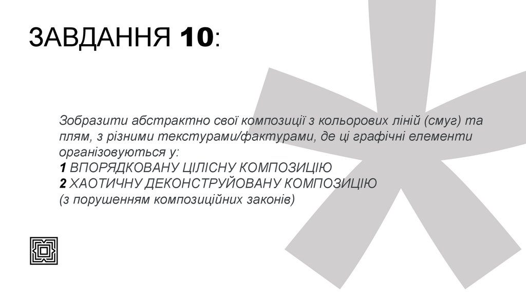 ЗАВДАННЯ 10:Зобразити абстрактно свої композиції з кольорових ліній (смуг) та