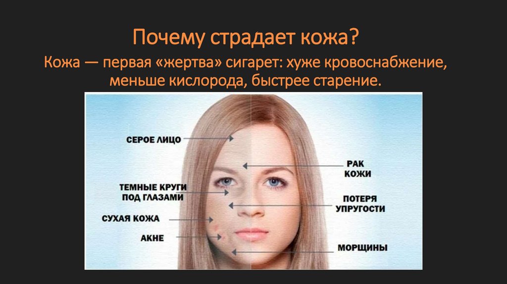 Почему страдает кожа?Кожа — первая «жертва» сигарет: хуже кровоснабжение,