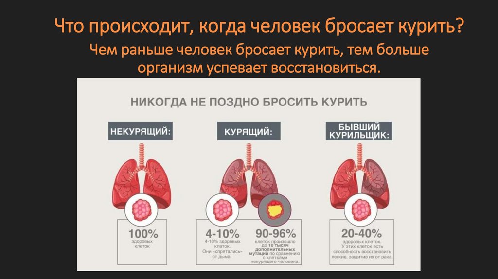 Что происходит, когда человек бросает курить?Чем раньше человек бросает курить, тем больше