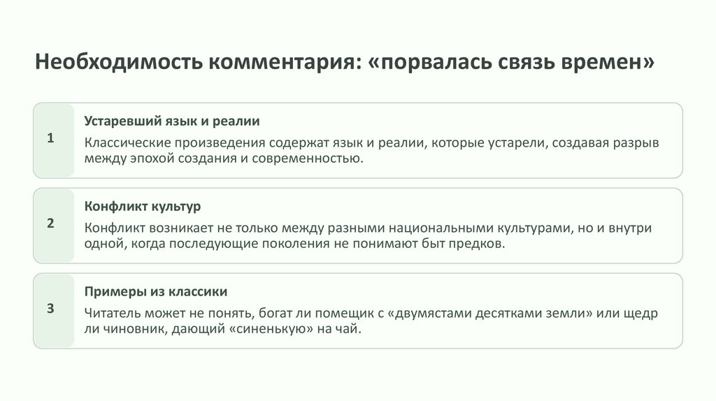 Классические произведения содержат язык и реалии, которые устарели, создавая разрыв