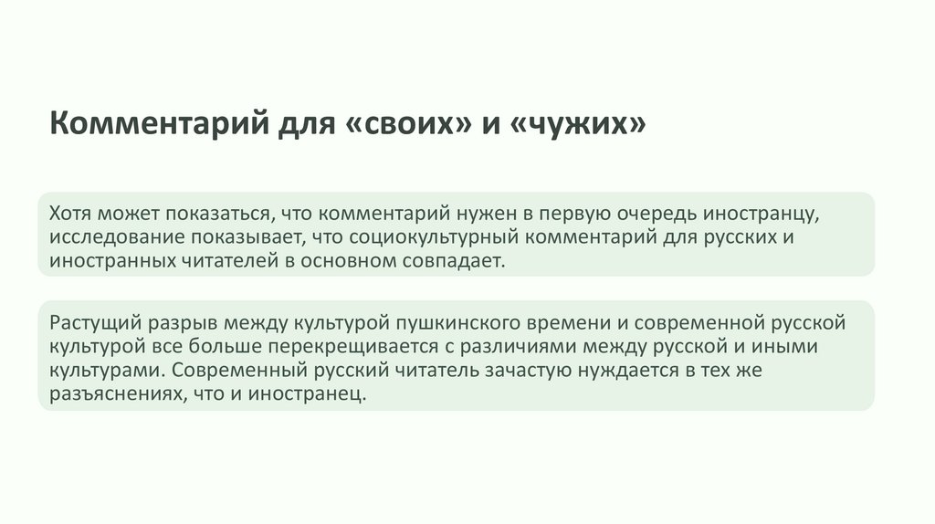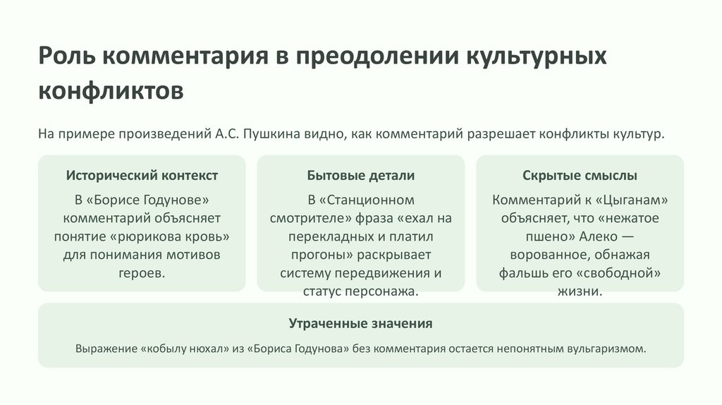 На примере произведений А.С. Пушкина видно, как комментарий разрешает конфликты культур.